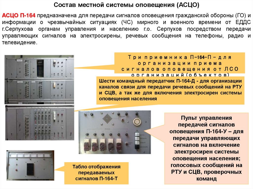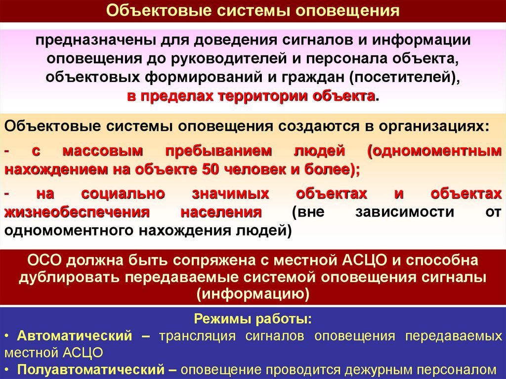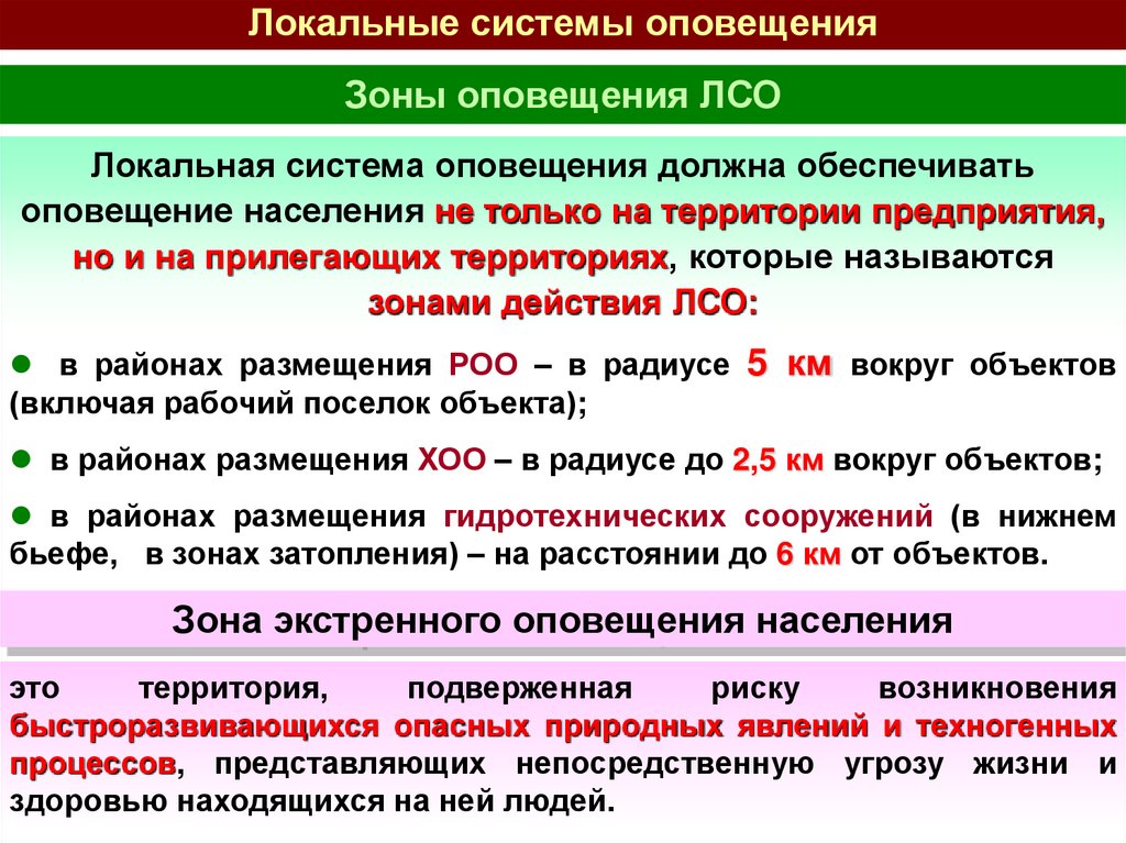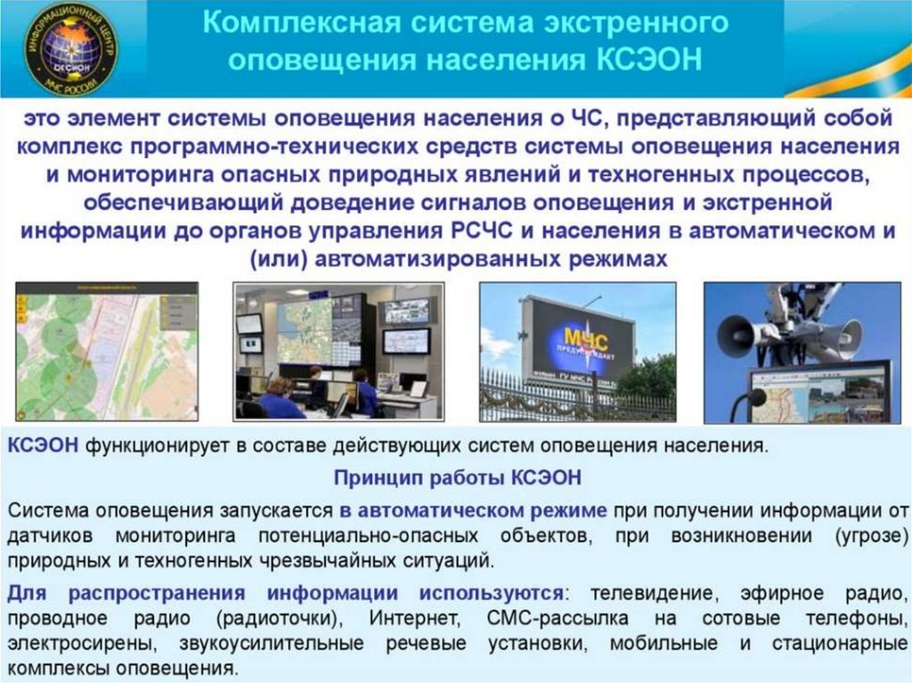 функционирование соответствующих систем оповещения.
