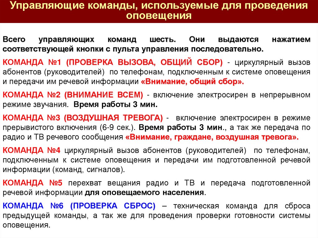 оповещения в соответствии со складывающейся обстановкой.