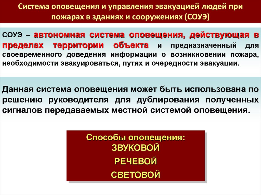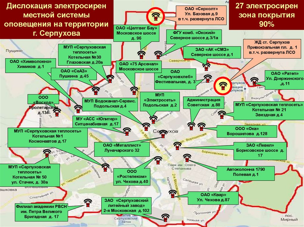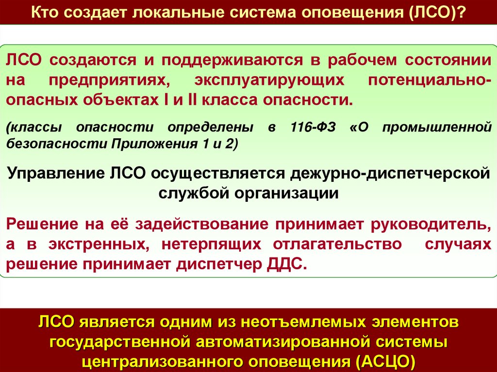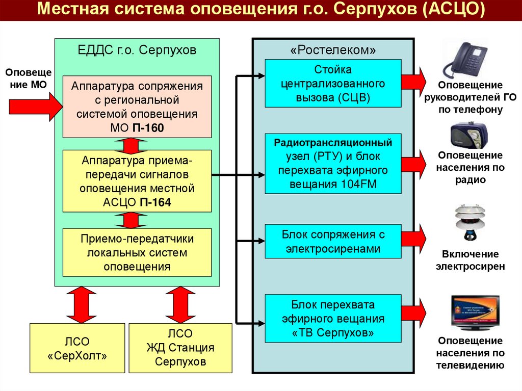 соответствующие системы оповещения. Организует