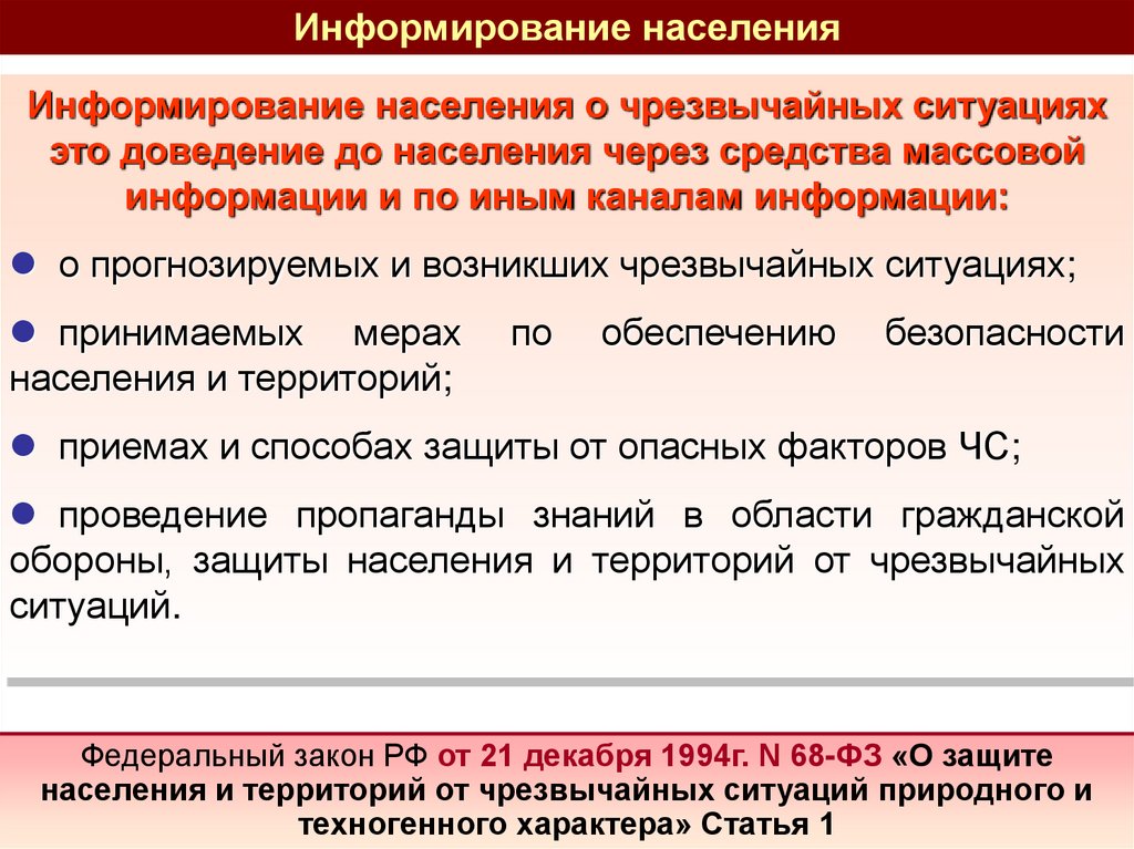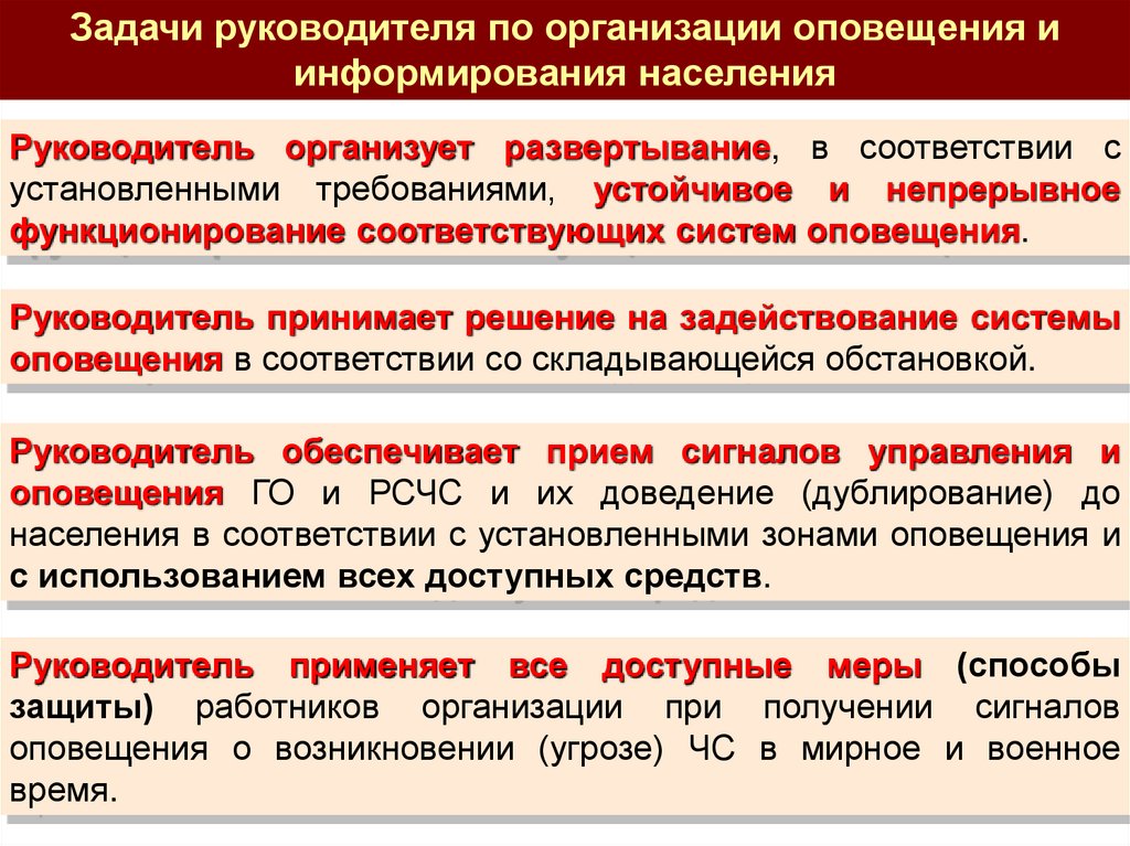 Задачи руководителя по организации оповещения иинформирования населения