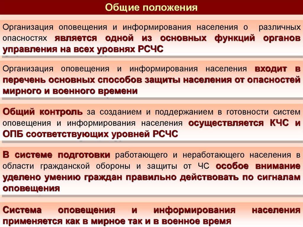 Общие положенияОрганизация оповещения и информирования населения о различных