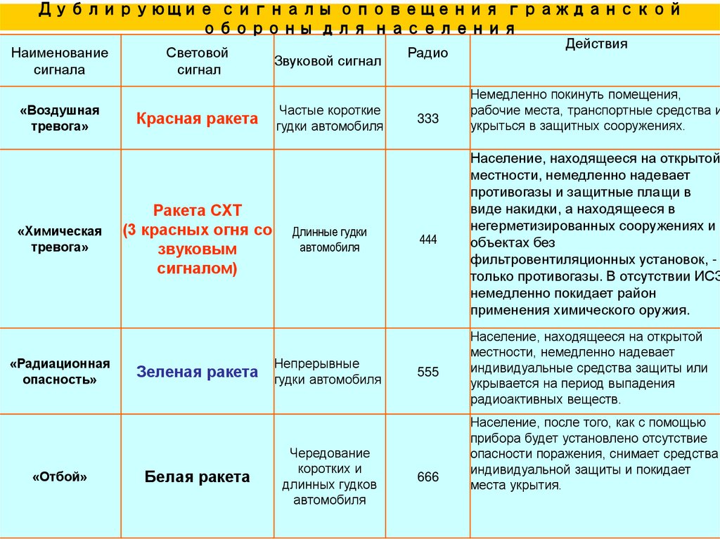 Население обязано знать сигналы оповещения и порядок