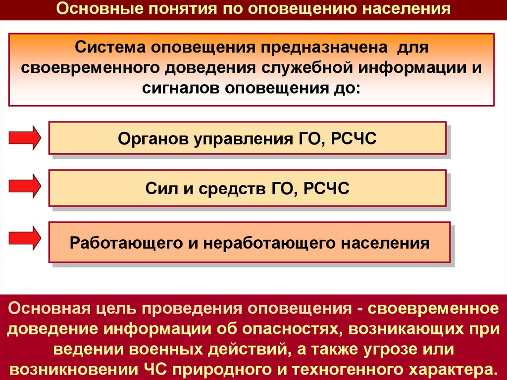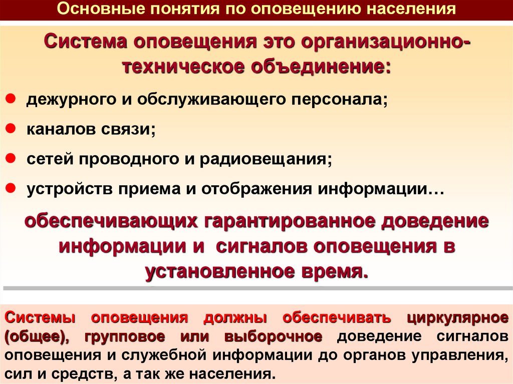 Основные понятия по оповещению населенияСистема оповещения это организационнотехническое объединение:
