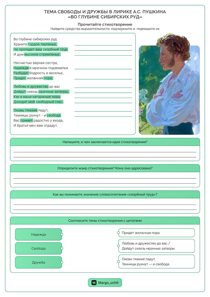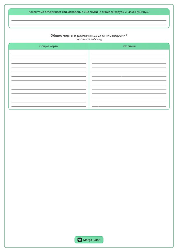 Какая тема объединяет стихотворения «Во глубине сибирских руд» и «И.И. Пущину»?_________________________________________________________________________________________________________________________