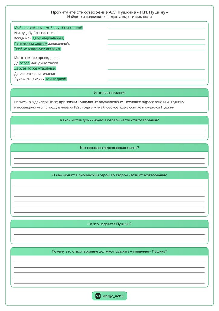Найдите и подпишите средства выразительностиМой первый друг, мой друг бесценный!