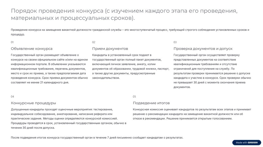 Проведение конкурса на замещение вакантной должности гражданской службы – это многоступенчатый процесс, требующий строгого соблюдения установленных сроков и