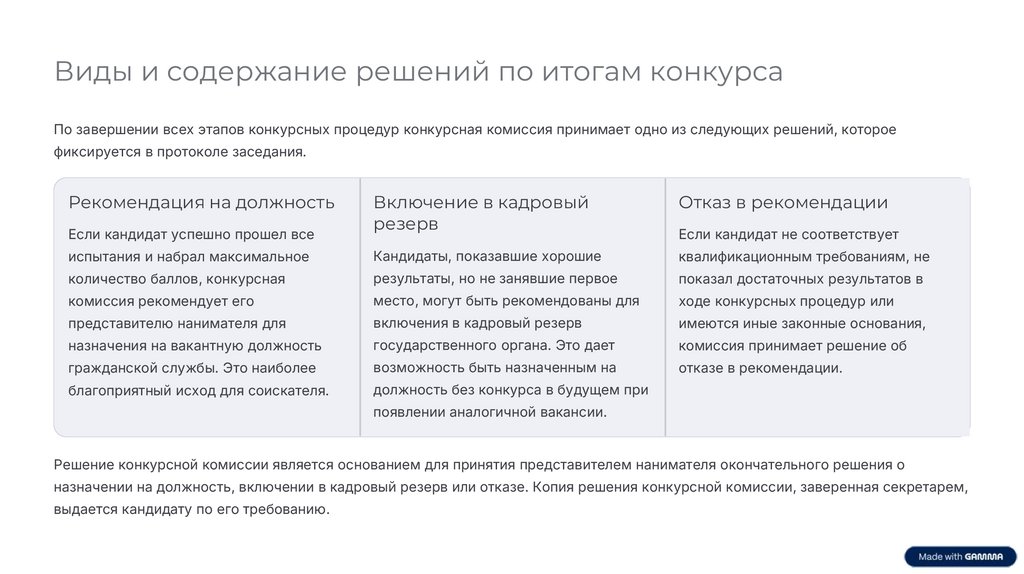 Решение конкурсной комиссии является основанием для принятия представителем нанимателя окончательного решения о