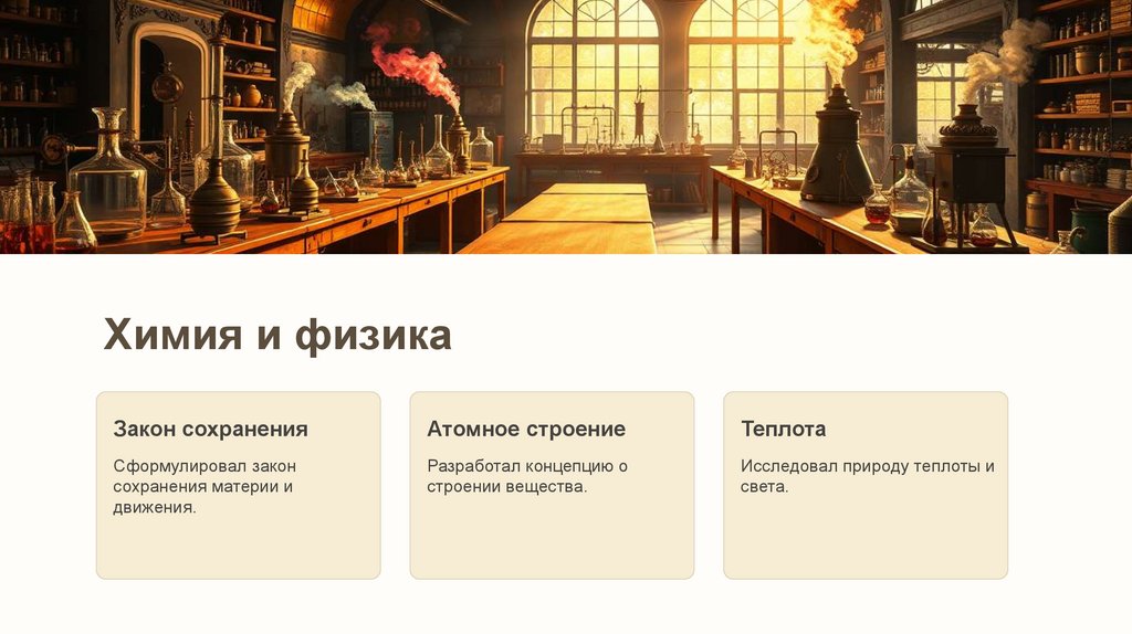 Ломоносов также основал первую в России химическую лабораторию. Он способствовал развитию Академии наук.