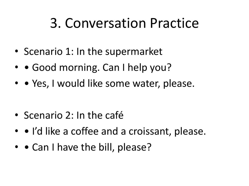 3. Conversation Practice• Scenario 1: In the supermarket