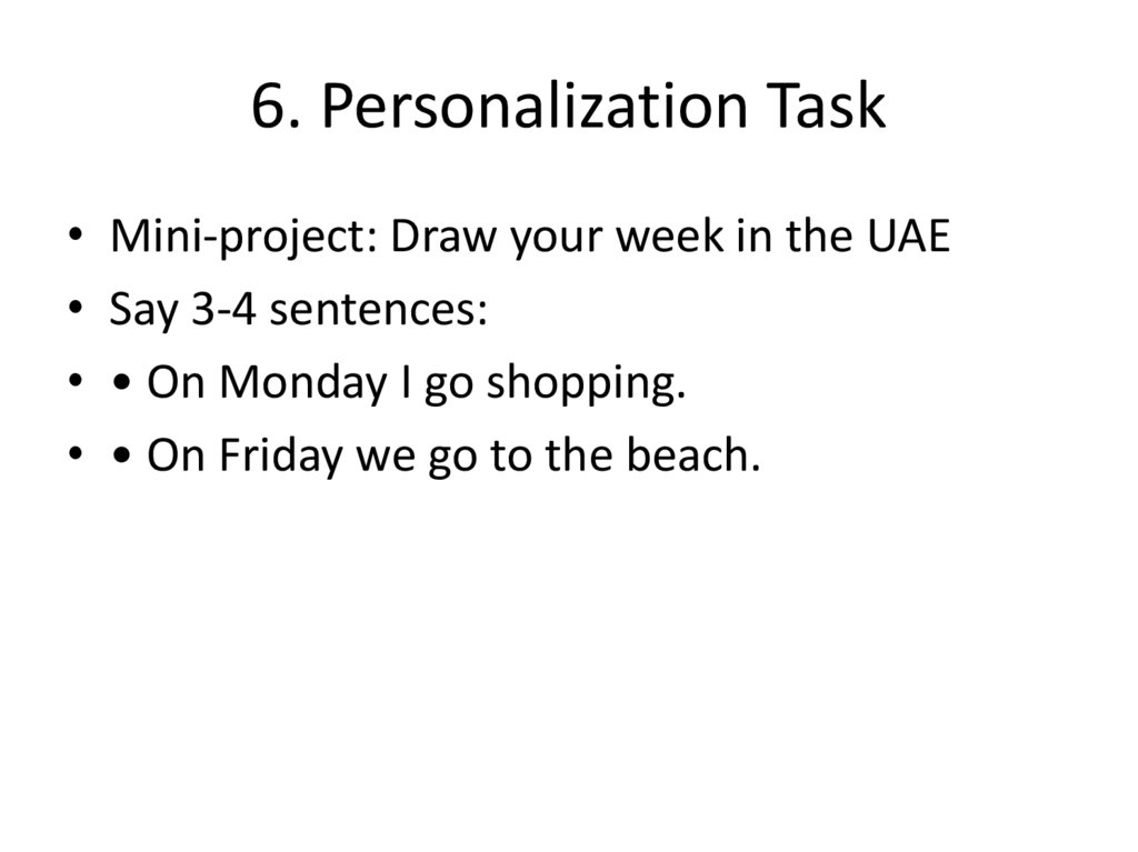 6. Personalization Task• Mini-project: Draw your week in the UAE