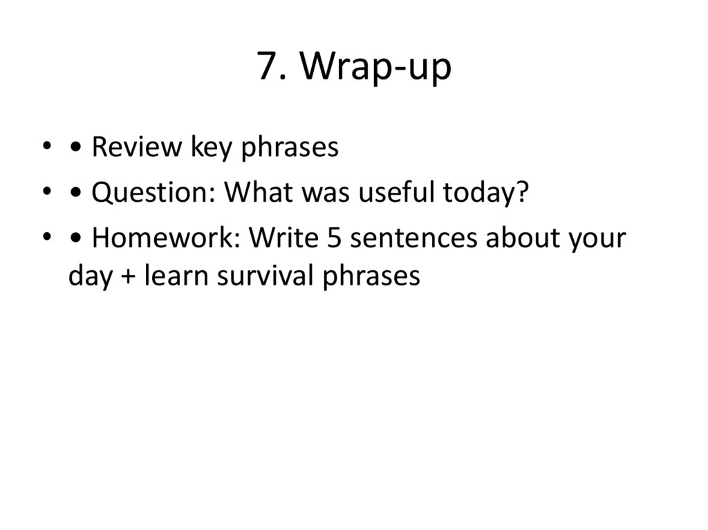 7. Wrap-up• • Review key phrases