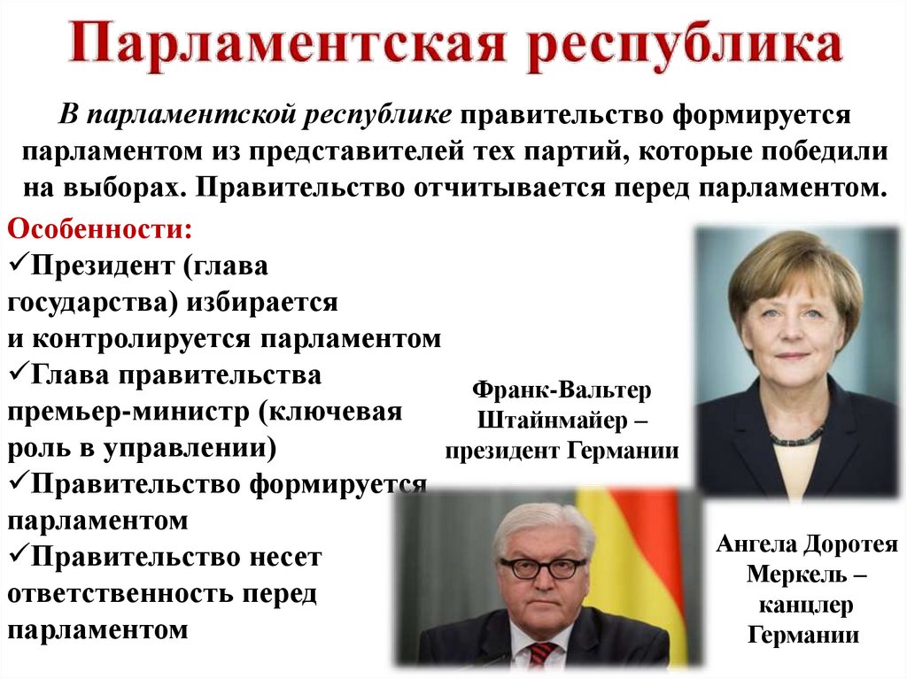 В парламентской республике правительство формируетсяпарламентом из представителей тех партий, которые победили