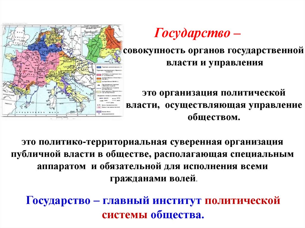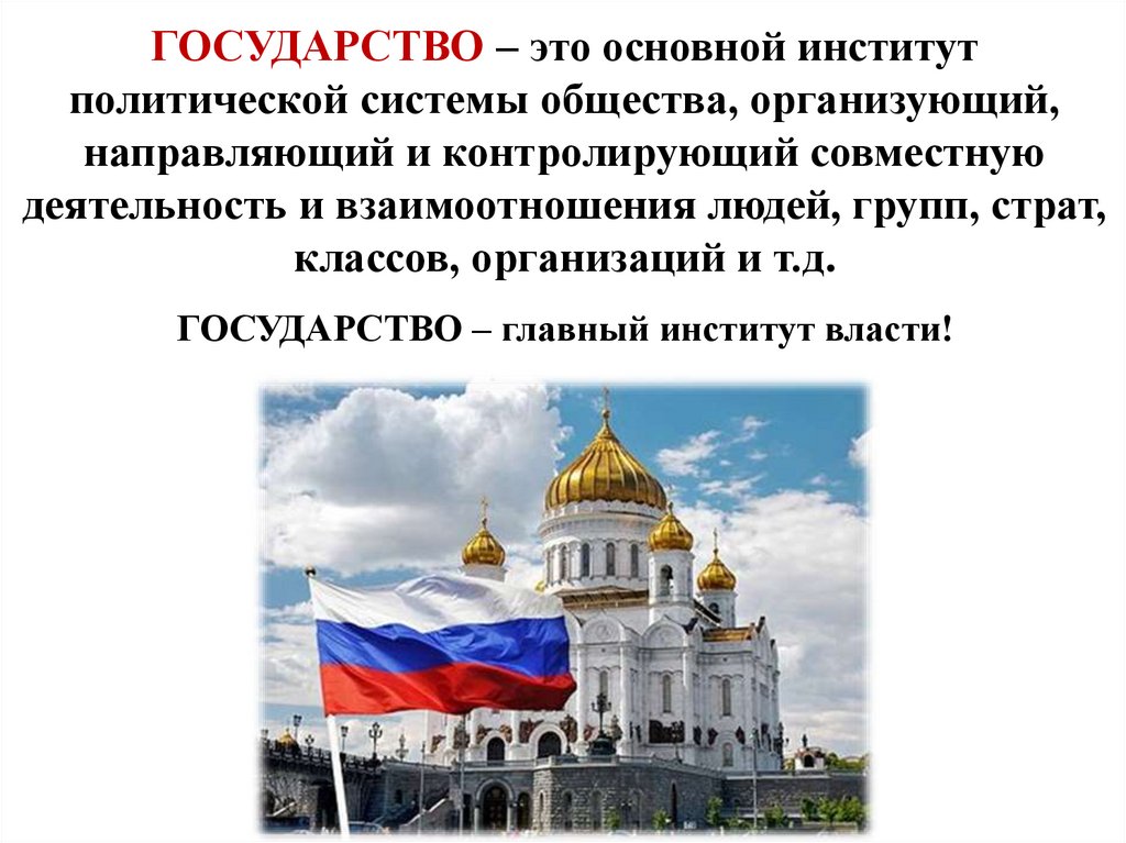 ГОСУДАРСТВО – это основной институтполитической системы общества, организующий,