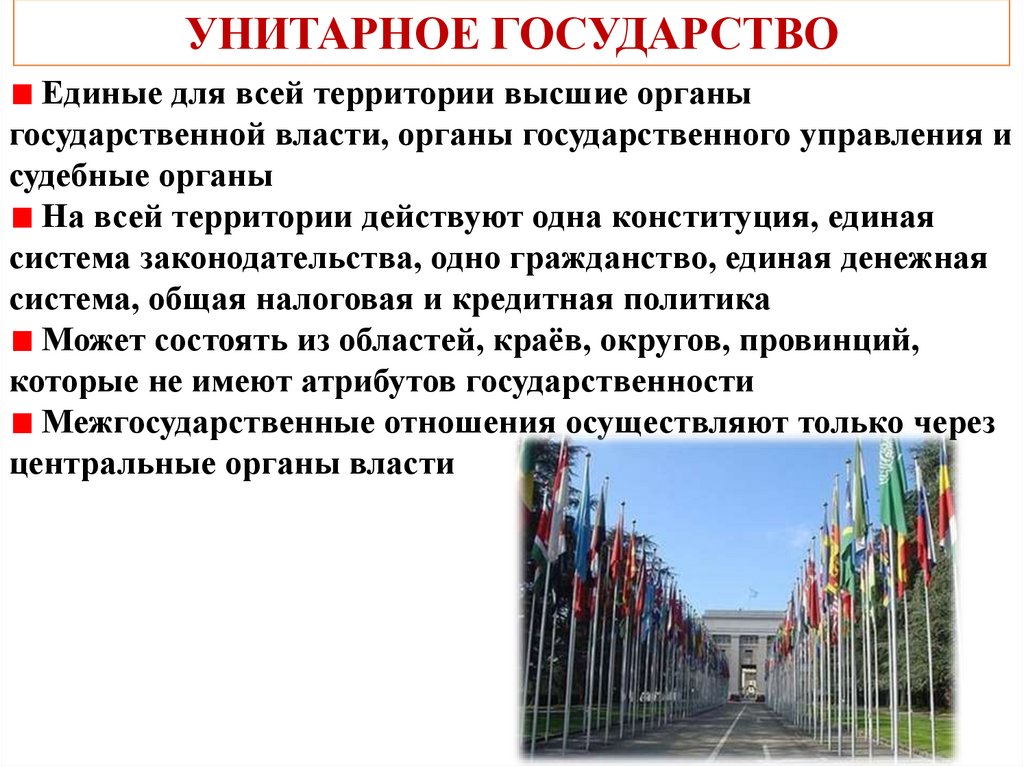 УНИТАРНОЕ ГОСУДАРСТВОЕдиные для всей территории высшие органы