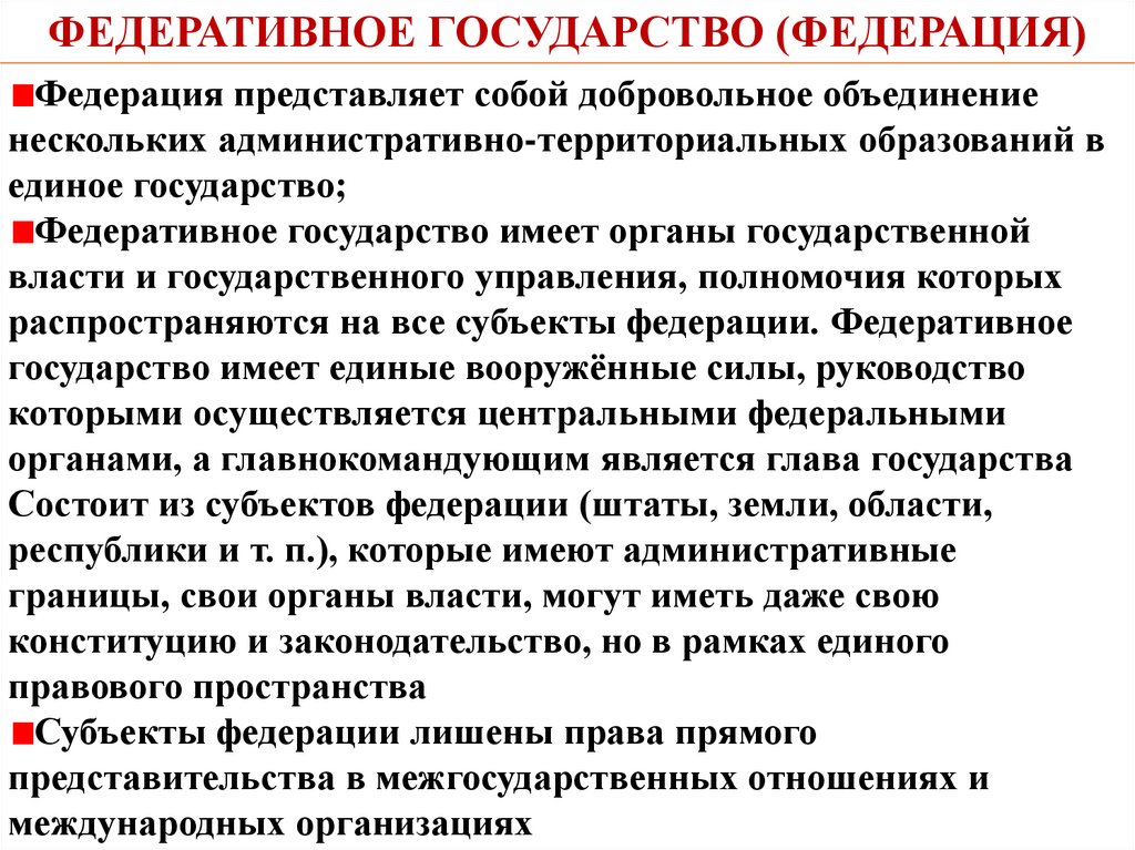 ФЕДЕРАТИВНОЕ ГОСУДАРСТВО (ФЕДЕРАЦИЯ)Федерация представляет собой добровольное объединение