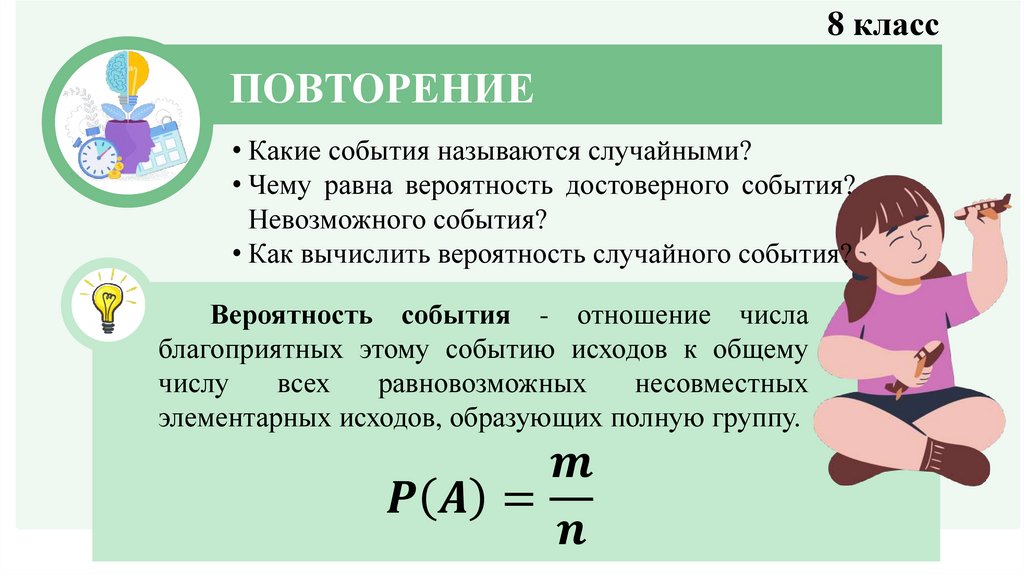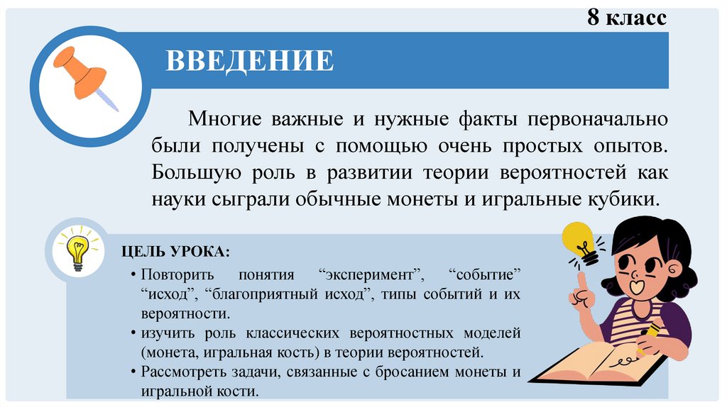 • Повторить понятия “эксперимент”, “событие”