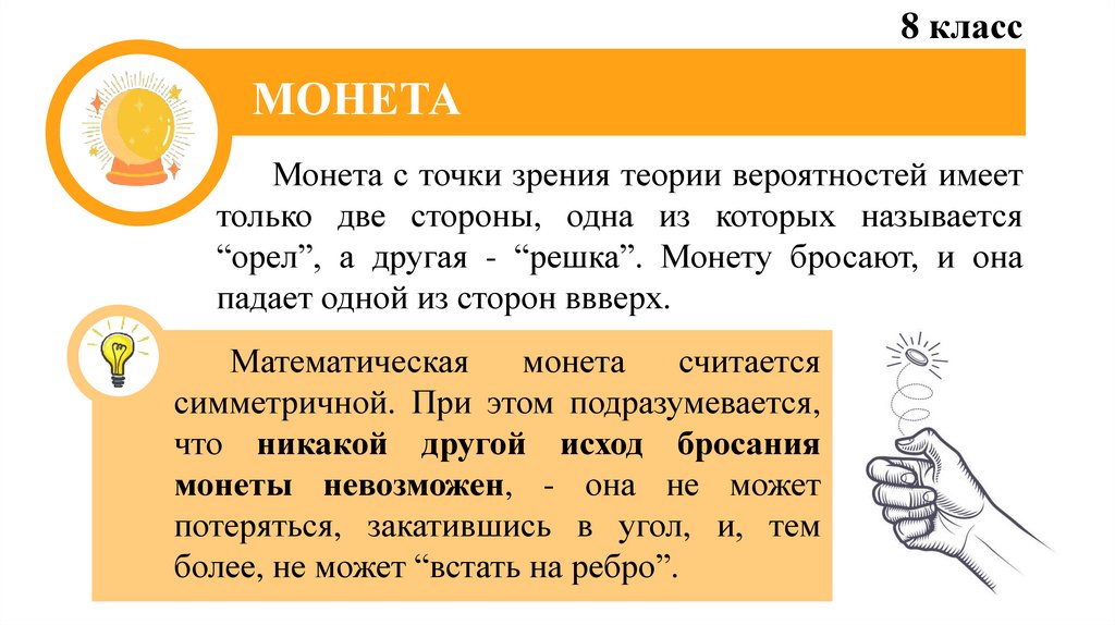 Монета с точки зрения теории вероятностей имеет