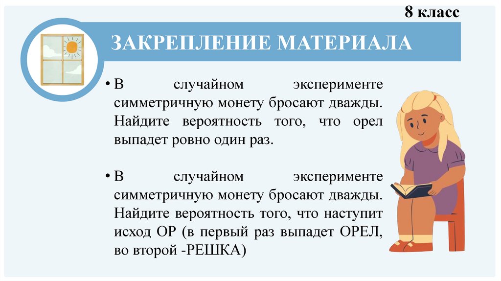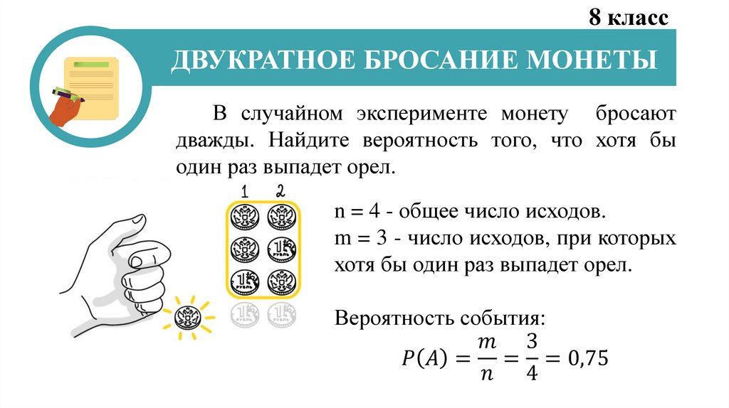• Рассмотреть задачи, связанные с бросанием монеты и