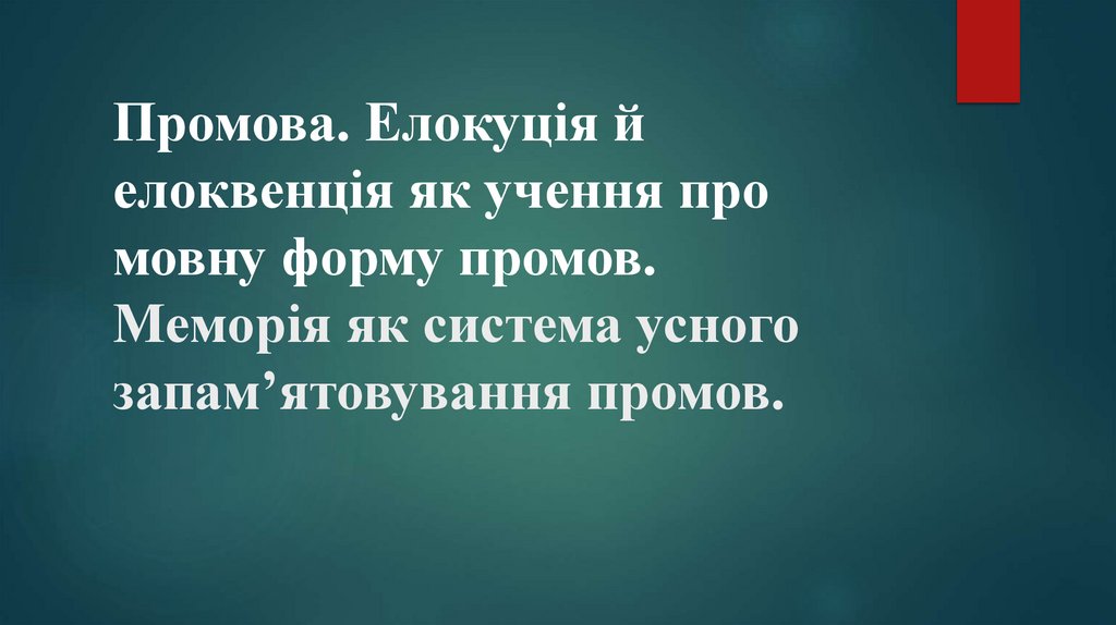 1. Промова. Елокуція й елоквенція як учення про мовну форму промов. Меморія як система усного запам’ятовування промов.