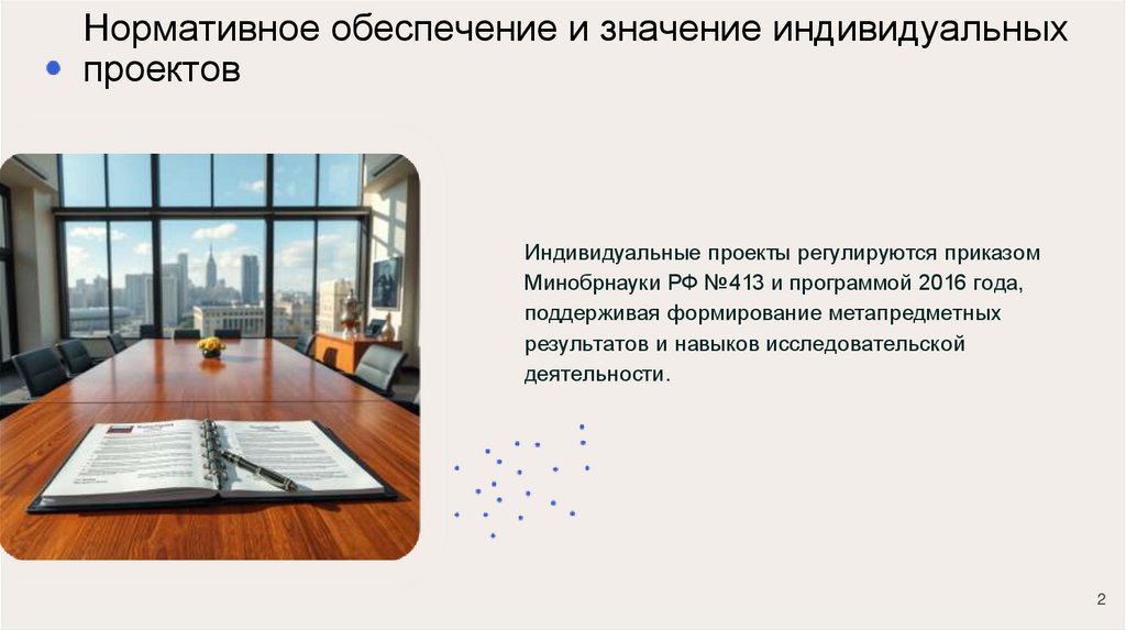 Нормативное обеспечение и значение индивидуальныхпроектов