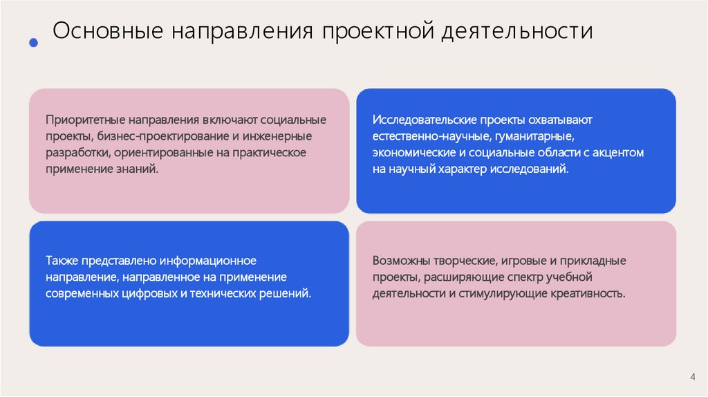 Основные направления проектной деятельностиПриоритетные направления включают социальные