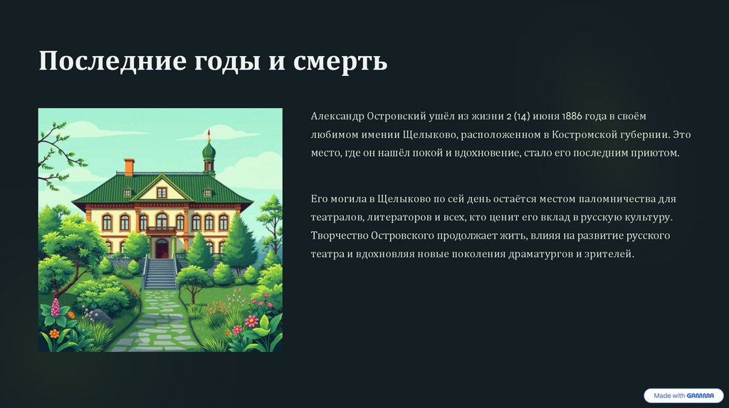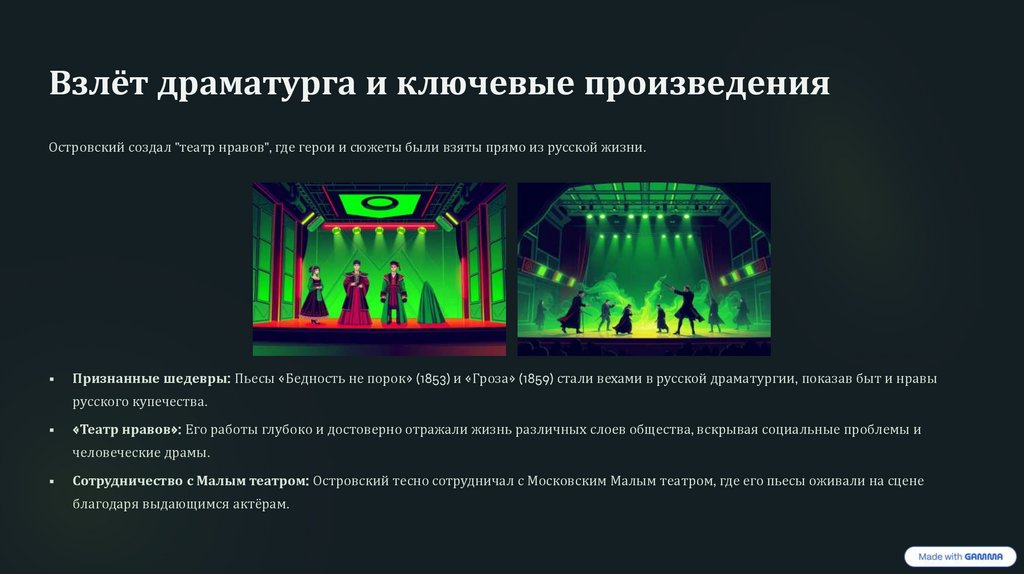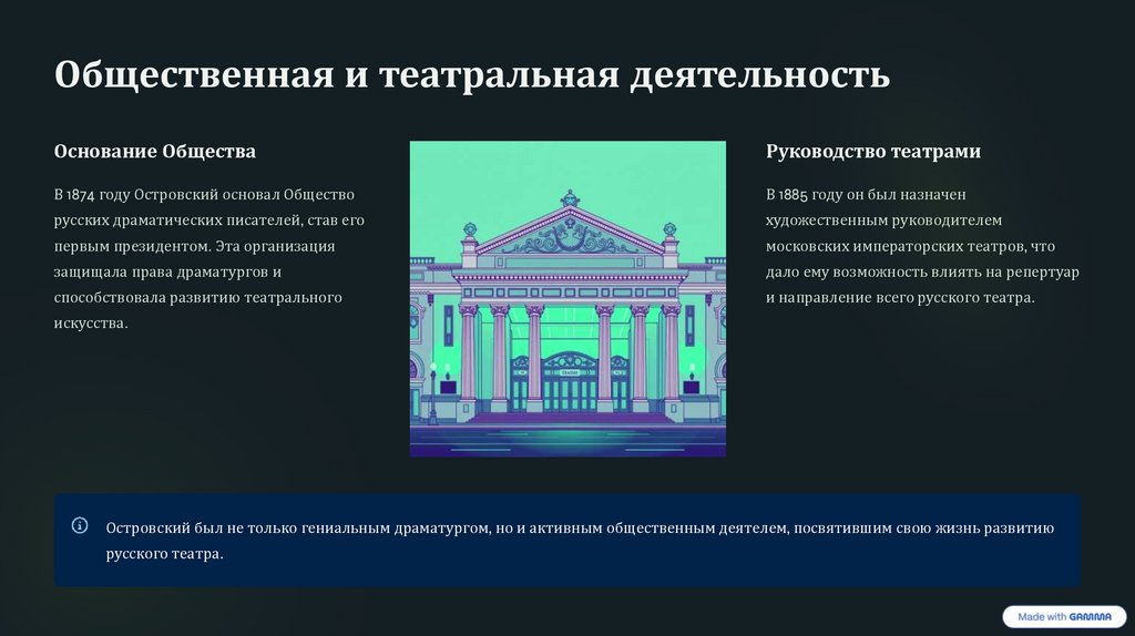 Островский был не только гениальным драматургом, но и активным общественным деятелем, посвятившим свою жизнь развитию