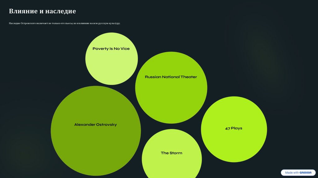Влияние и наследиеНаследие Островского включает не только его пьесы, но и влияние на всю русскую культуру.