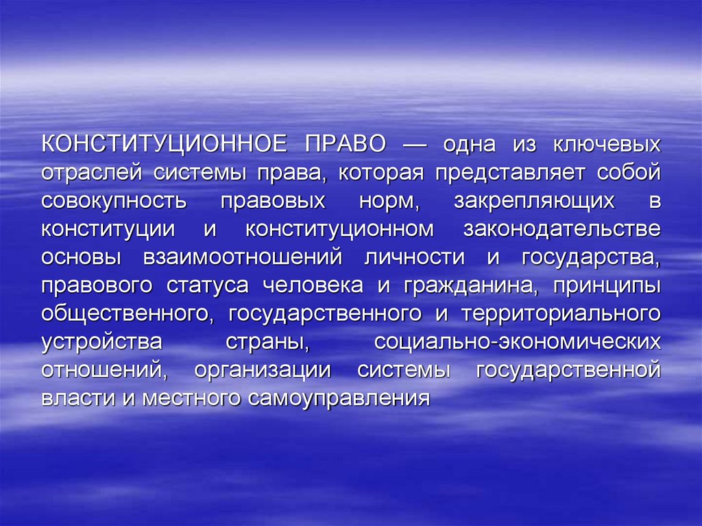 КОНСТИТУЦИОННОЕ ПРАВО — одна из ключевыхотраслей системы права, которая представляет собой