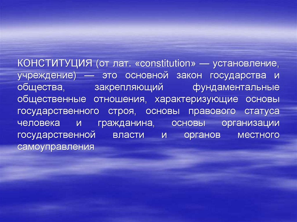 КОНСТИТУЦИЯ (от лат. «constitution» — установление,учреждение) — это основной закон государства и