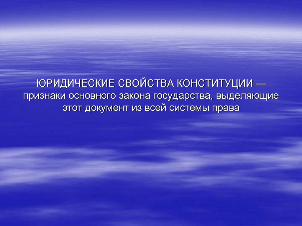 ЮРИДИЧЕСКИЕ СВОЙСТВА КОНСТИТУЦИИ —признаки основного закона государства, выделяющие