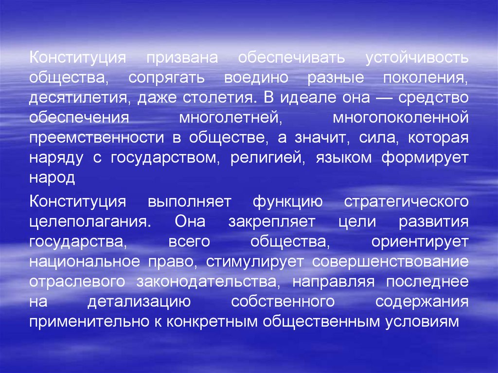 Конституция призвана обеспечивать устойчивостьобщества, сопрягать воедино разные поколения,