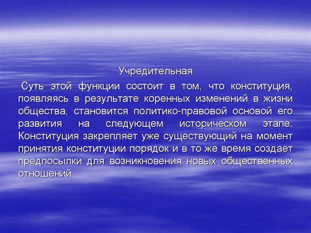 УчредительнаяСуть этой функции состоит в том, что конституция,