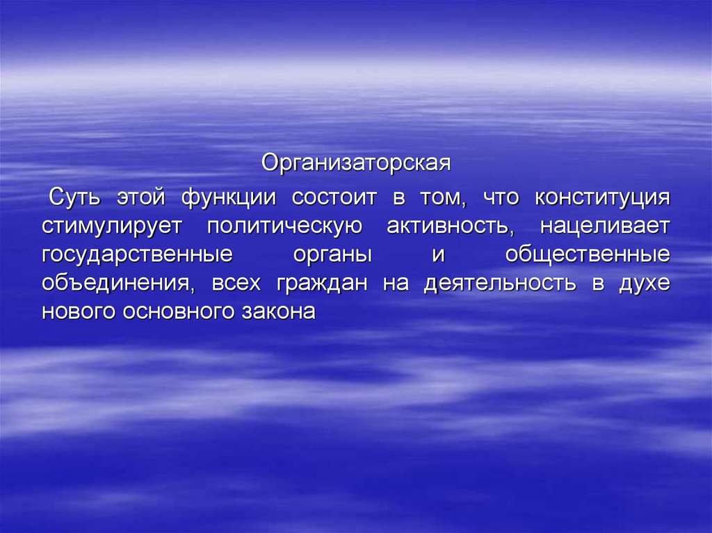 ОрганизаторскаяСуть этой функции состоит в том, что конституция