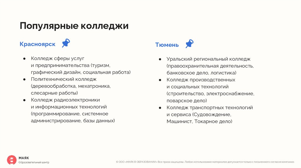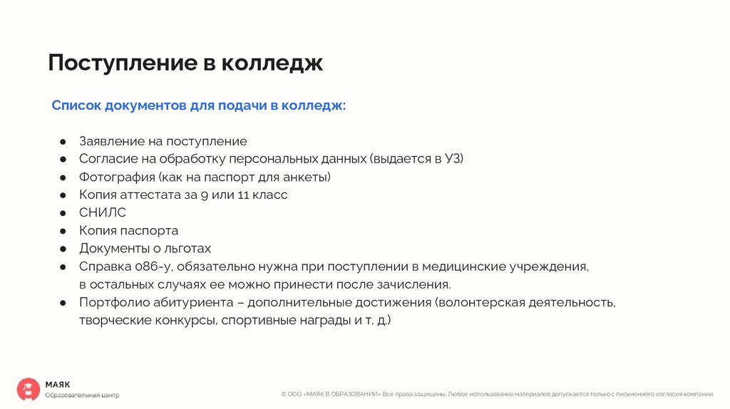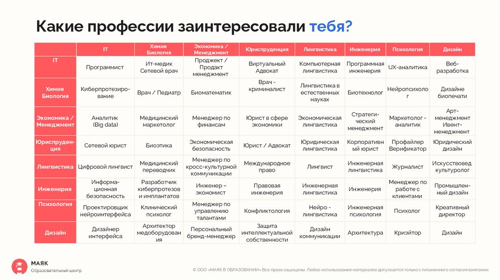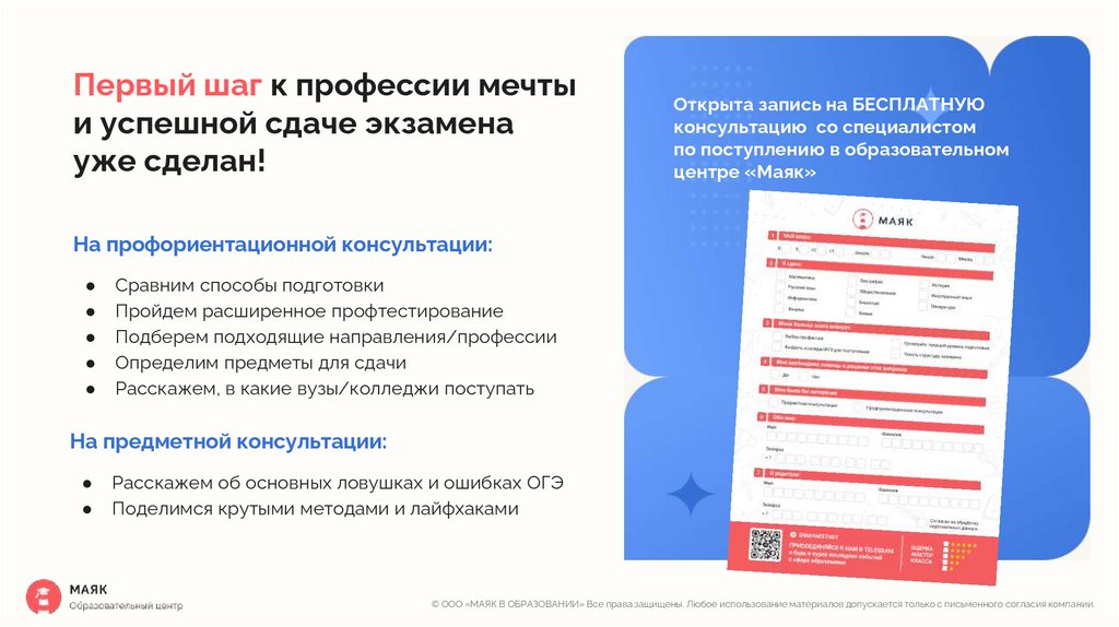 © ООО «МАЯК В ОБРАЗОВАНИИ» Все права защищены. Любое использование материалов допускается только с письменного согласия компании.