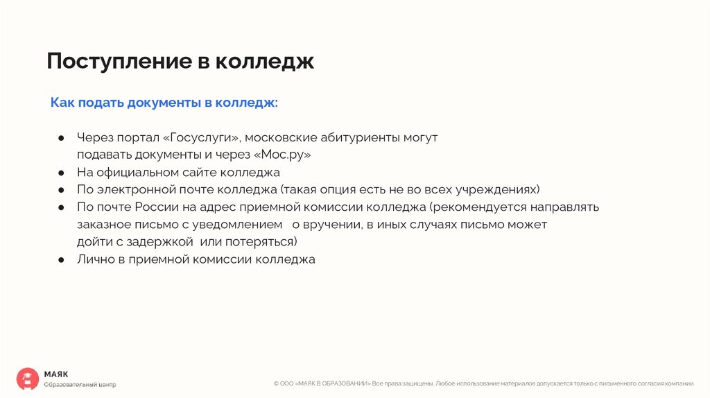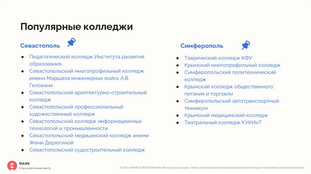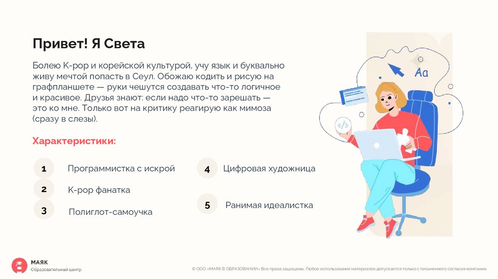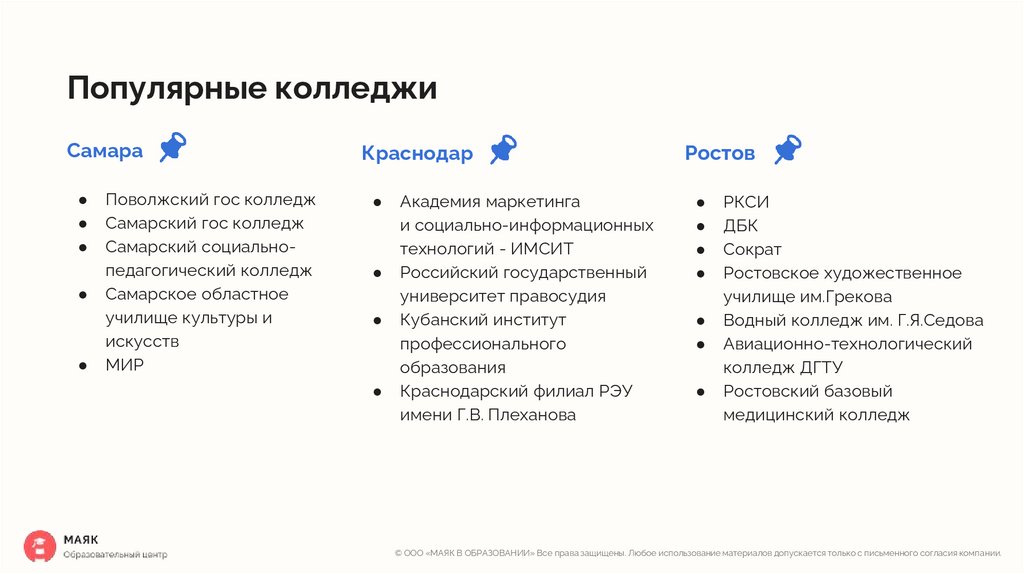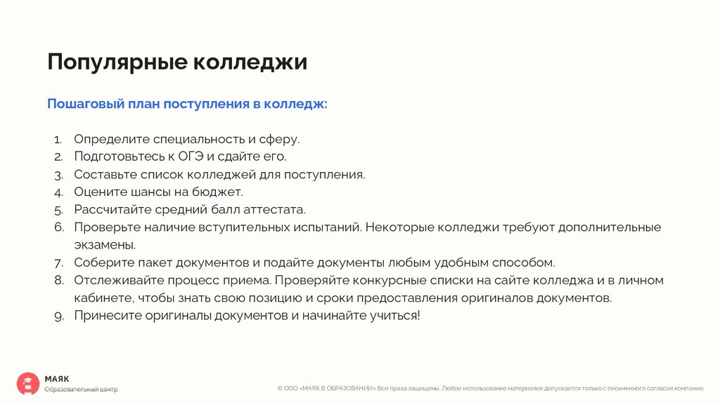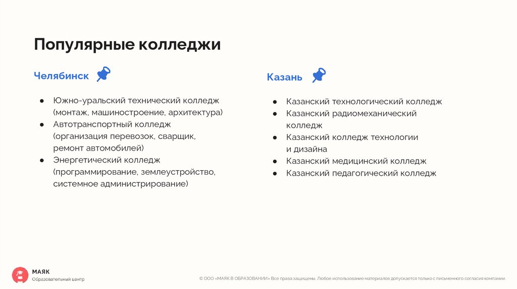 © ООО «МАЯК В ОБРАЗОВАНИИ» Все права защищены. Любое использование материалов допускается только с письменного согласия компании.53.