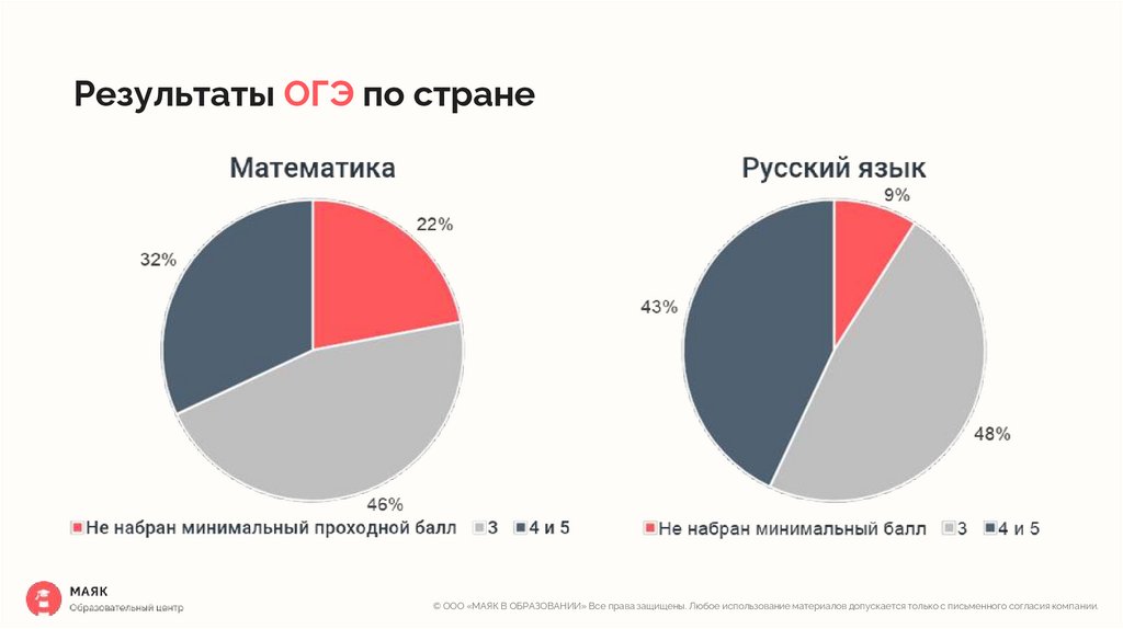 Результаты ОГЭ по стране© ООО «МАЯК В ОБРАЗОВАНИИ» Все права защищены. Любое использование материалов допускается только с письменного согласия компании.