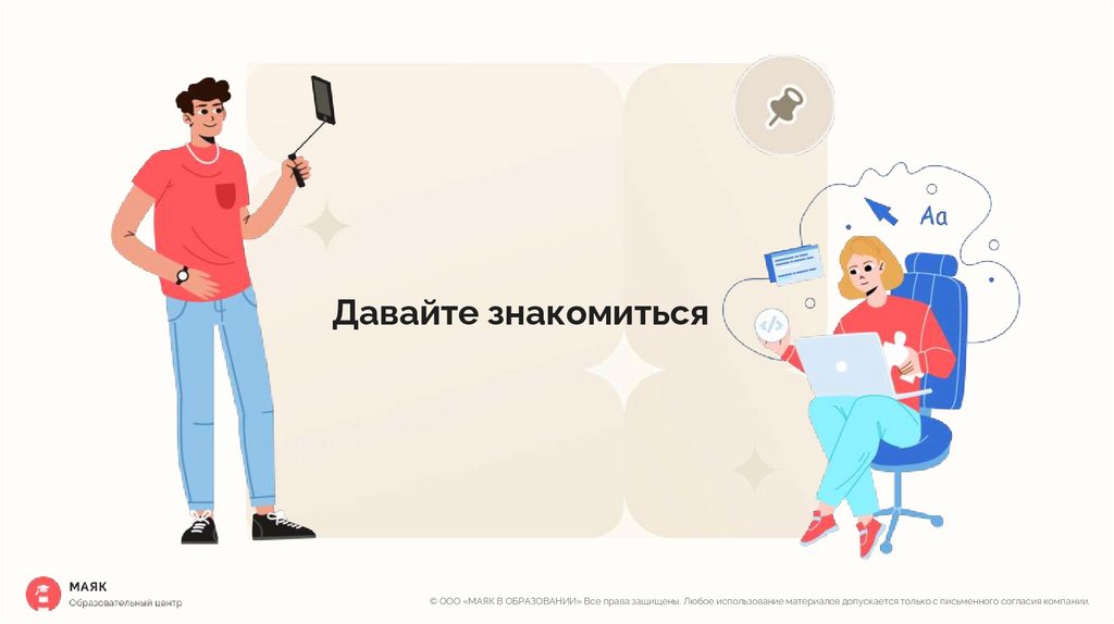 Давайте знакомиться© ООО «МАЯК В ОБРАЗОВАНИИ» Все права защищены. Любое использование материалов допускается только с письменного согласия компании.