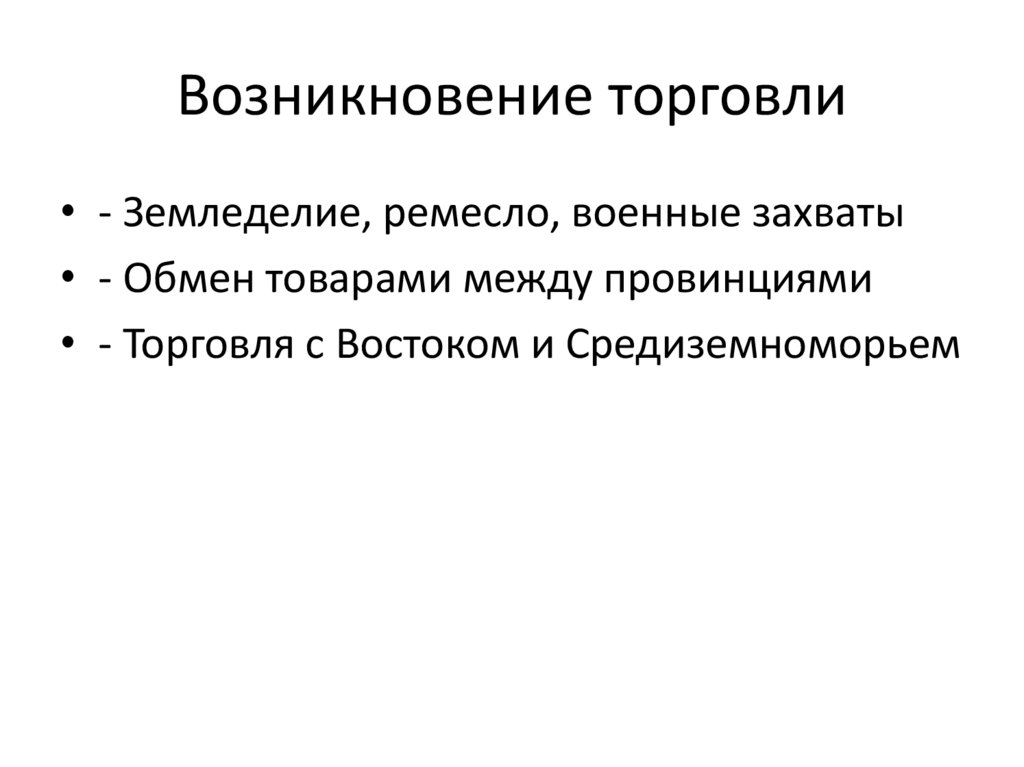 Возникновение торговли• - Земледелие, ремесло, военные захваты