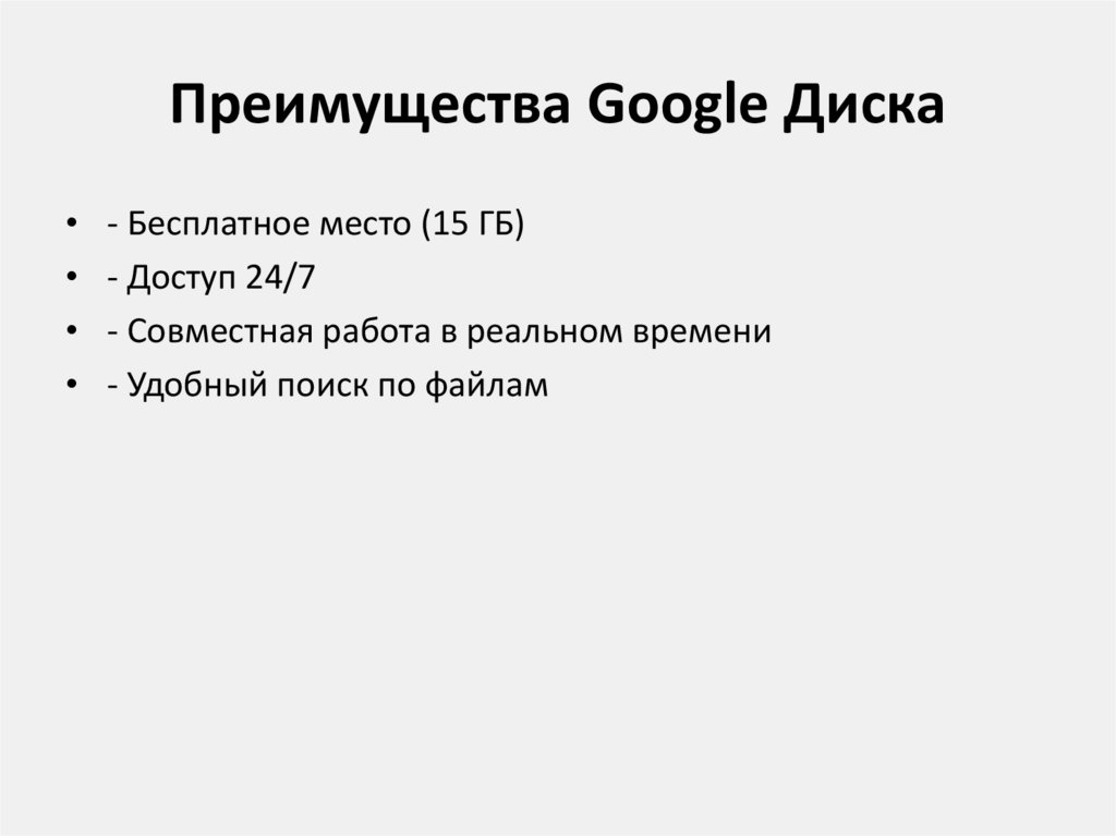 Преимущества Google Диска- Бесплатное место (15 ГБ)