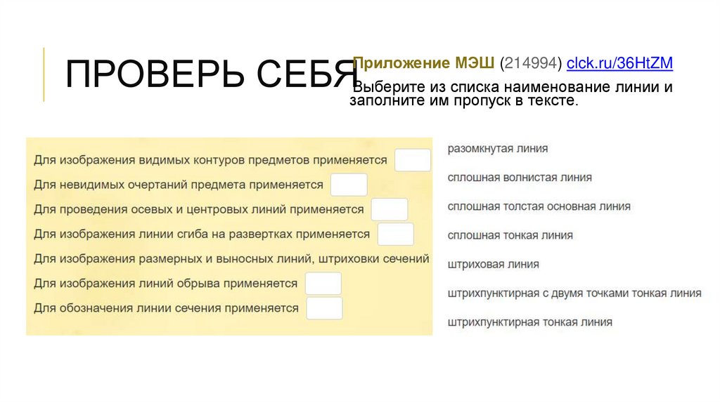 ПРОВЕРЬ СЕБЯУказать названия линий на чертеже детали.Приложение МЭШ (41780) clck.ru/36HuGA