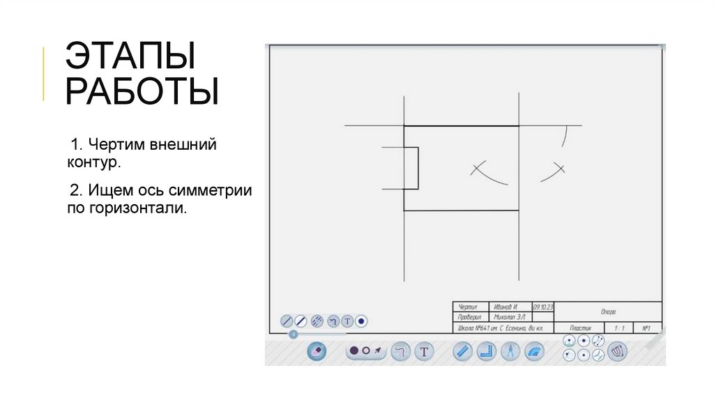 вычерчивают видимый контур, а также рамку и основную надпись.