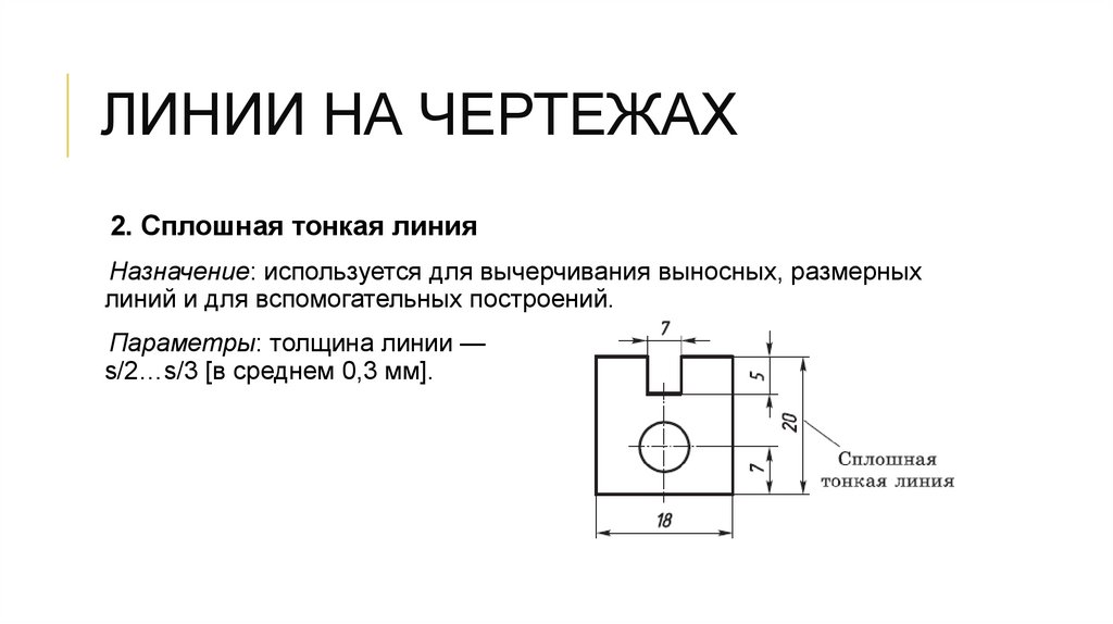 ЛИНИИ НА ЧЕРТЕЖАХ2. Сплошная тонкая линия