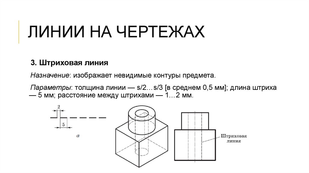 ЛИНИИ НА ЧЕРТЕЖАХ3. Штриховая линия