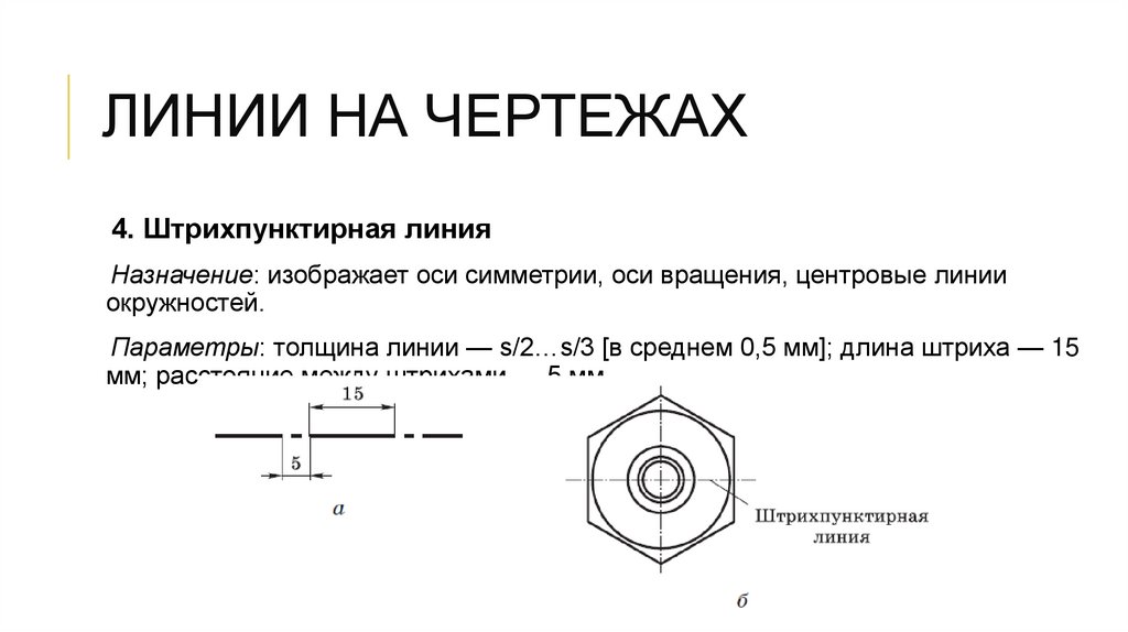 ЛИНИИ НА ЧЕРТЕЖАХ4. Штрихпунктирная линия