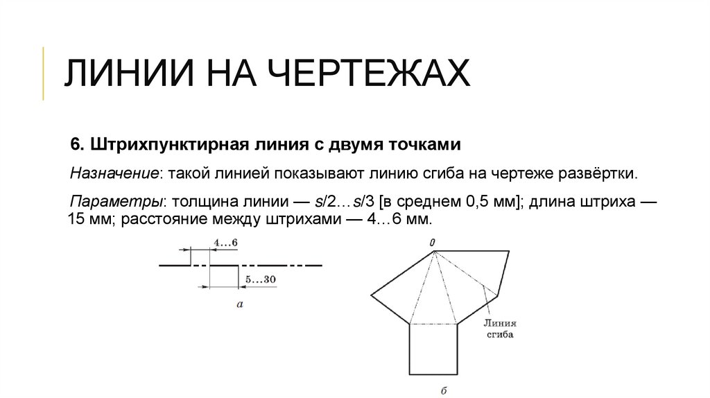 ЛИНИИ НА ЧЕРТЕЖАХ6. Штрихпунктирная линия с двумя точками