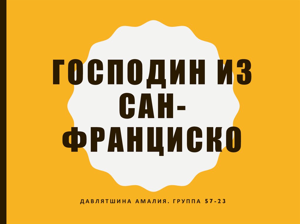 СЮЖЕТ ПРОИЗВЕДЕНИЯ• Главный герой — богатый господин из Сан-Франциско, которому