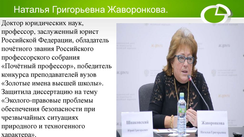 Наталья Григорьевна Жаворонкова.Доктор юридических наук,