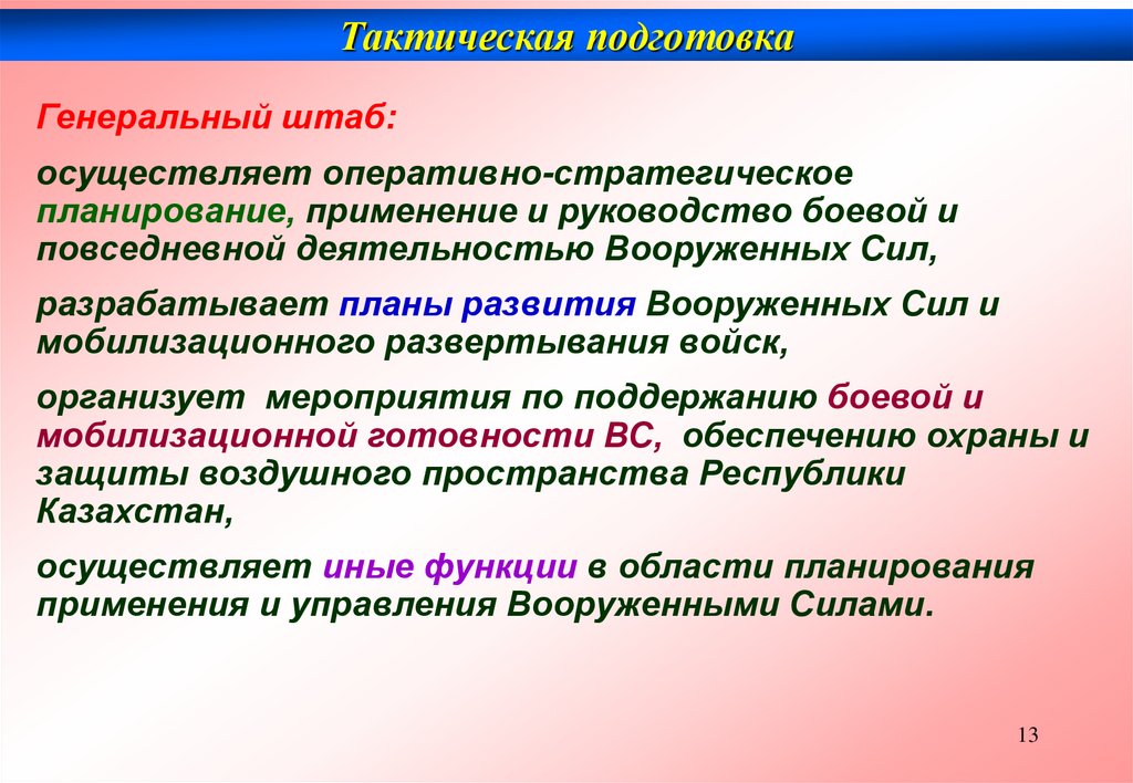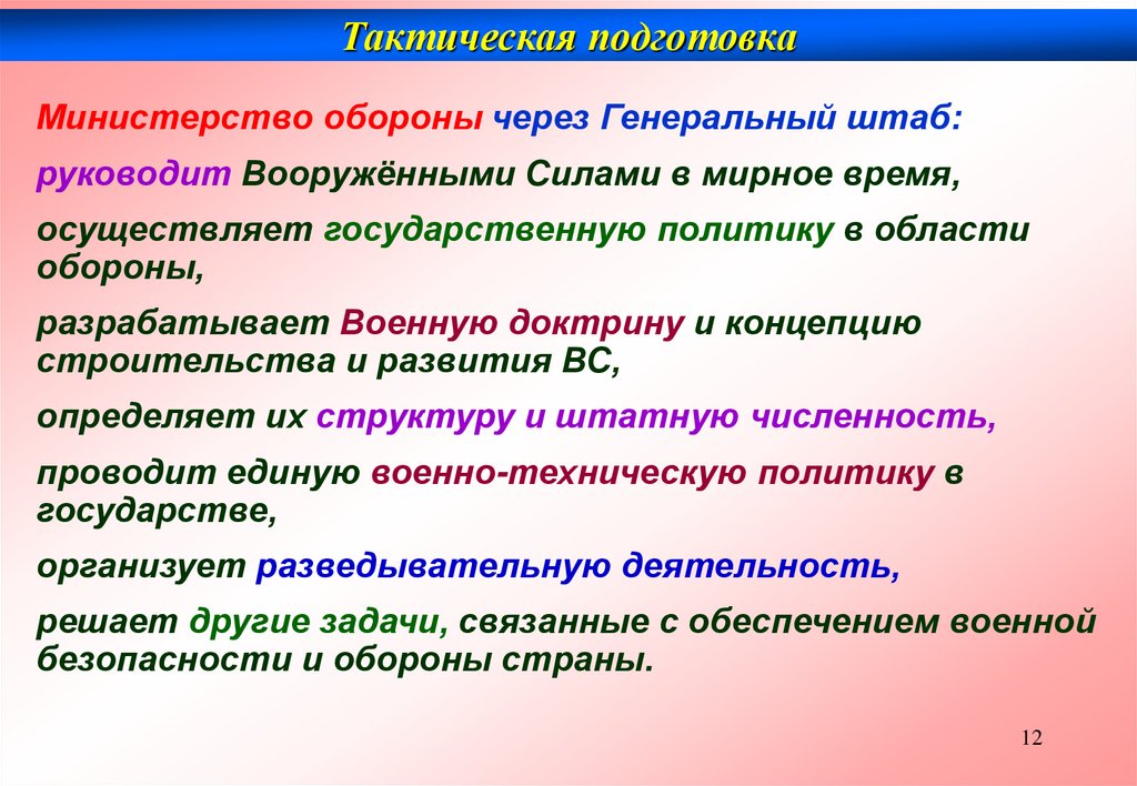 Тактическая подготовкаМинистерство обороны через Генеральный штаб: