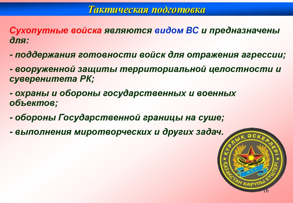 Тактическая подготовкаКроме этого Вооруженные Силы могут быть
