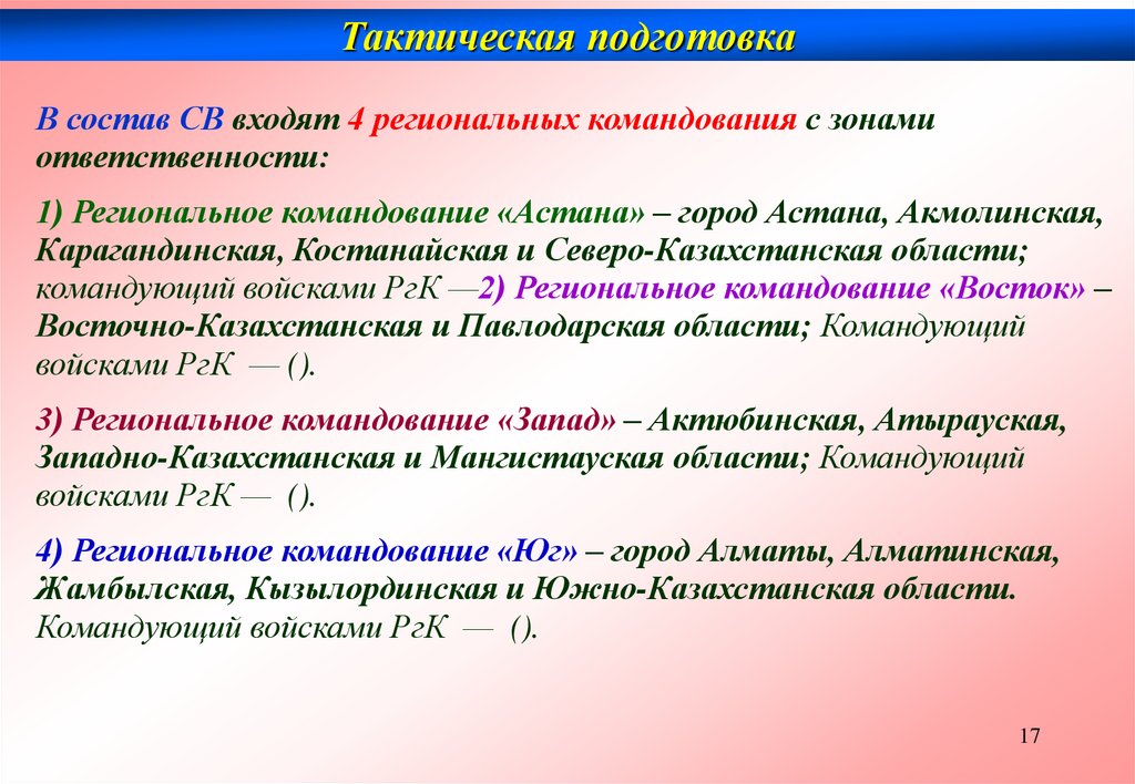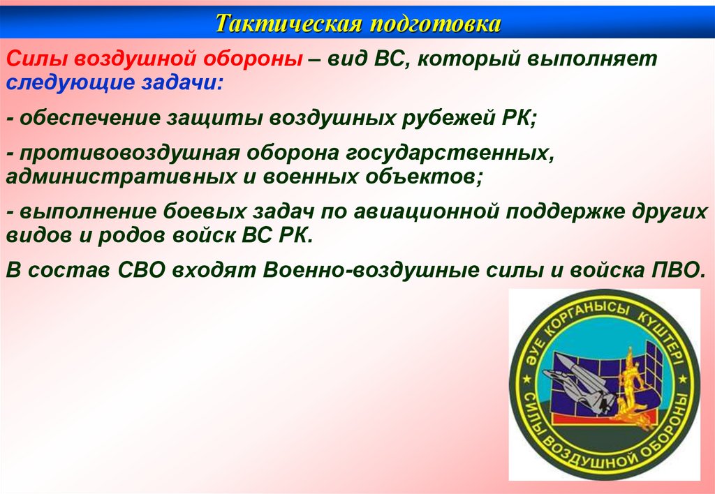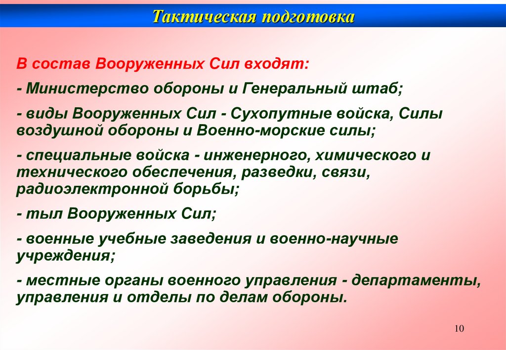Тактическая подготовкаВ состав Вооруженных Сил входят: